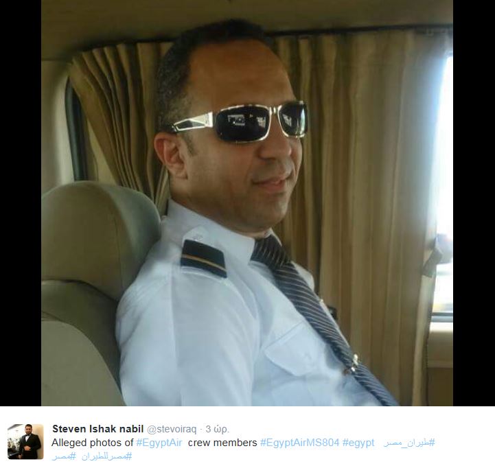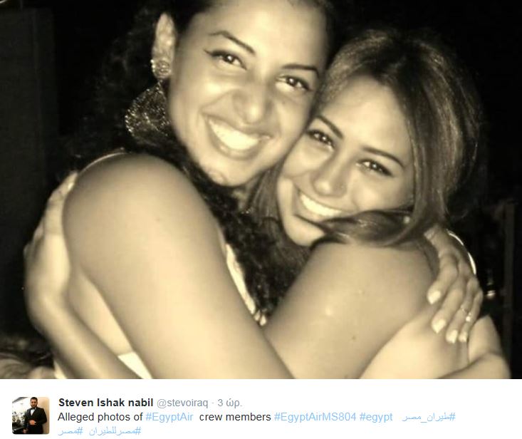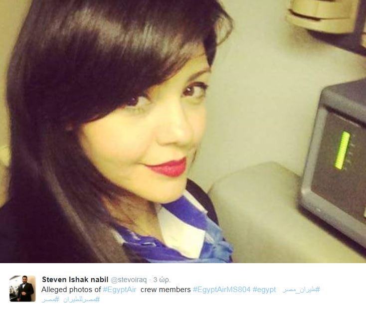 Ο ανεξάρτητος δημοσιογράφος Στίβεν Ισάκ Ναμπίλ, ανέβασε στον προσωπικό του λογαριασμό στο twitter, φωτογραφίες με ορισμένα από τα μέλη του πληρώματος του Airbus της Egyptair η οποία εξαφανίστηκε από τα ραντάρ, λίγο πριν φτάσει στο Κάιρο.