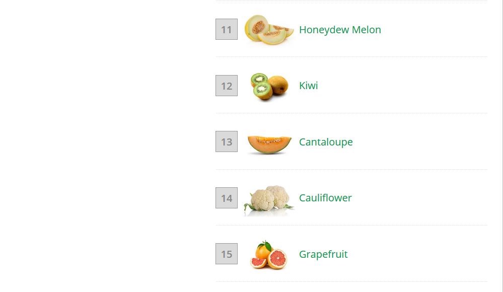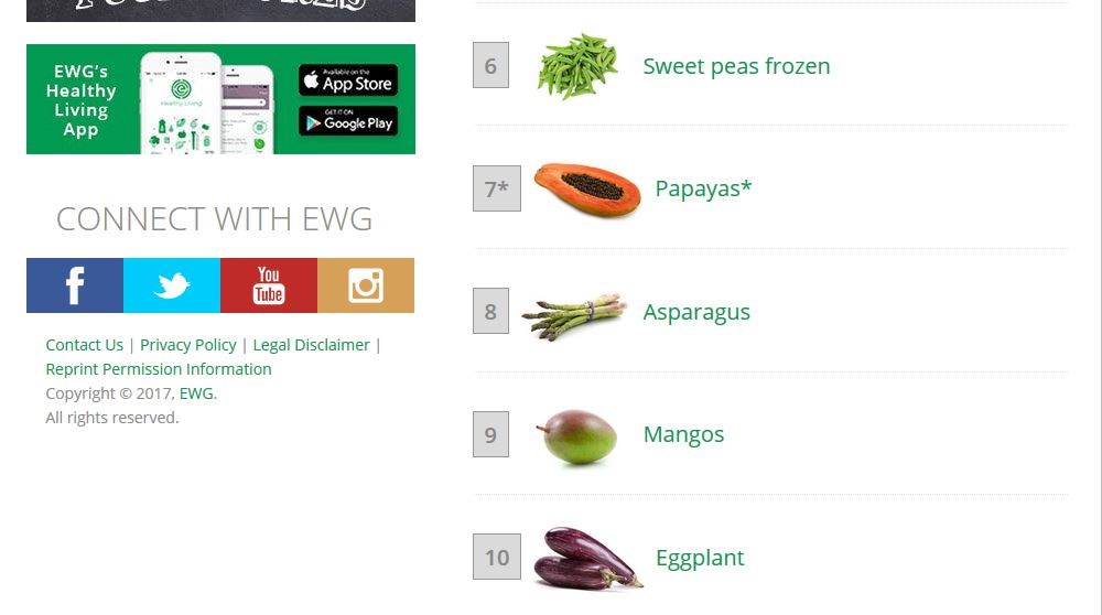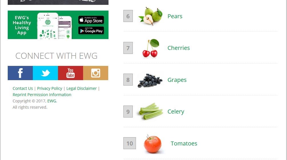 Η καθαρή δεκαπεντάδα περιλαμβάνει τα προϊόντα με τις μικρότερες συγκεντρώσεις παρασιτοκτόνων.