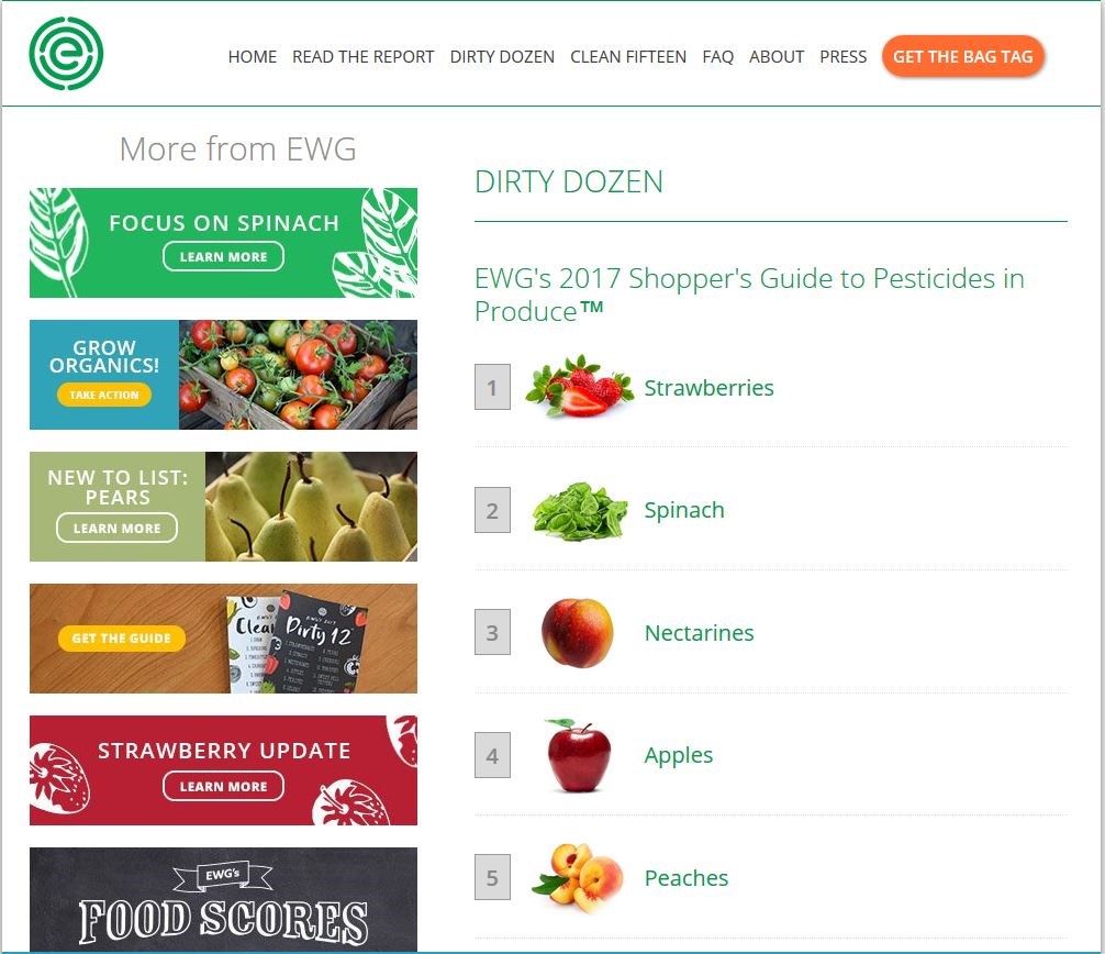 Σύμφωνα με έκθεση του Υπουργείου Γεωργίας των ΗΠΑ, στην κορυφή της λίστας με τα πιο «βρώμικα» φρούτα και λαχανικά βρίσκονται οι φράουλες, καθώς στο 70% που εξετάστηκαν, βρέθηκαν κάποιας μορφής υπολείμματα φυτοφαρμάκων.