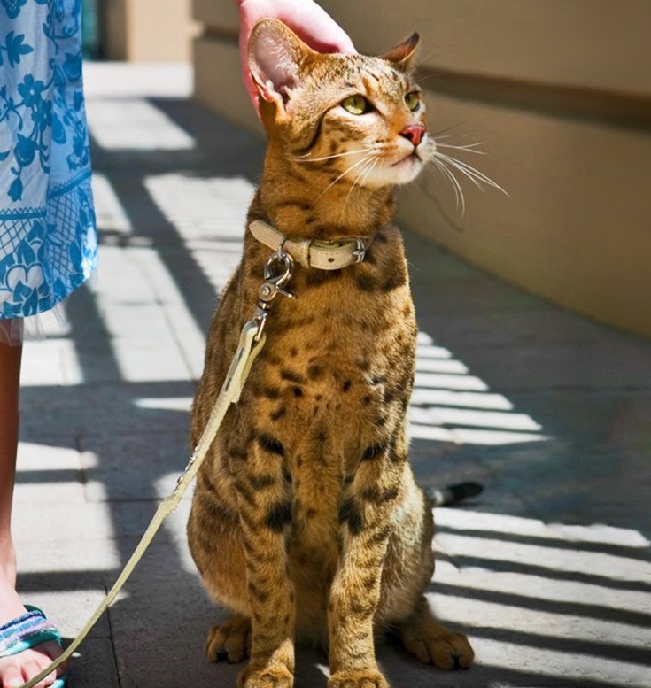 Αυτές οι γάτες αγαπούν να κολυμπούν, και, παρά το εντυπωσιακό μέγεθός τους (4-8 κιλά), συχνά ανεβαίνουν στους ώμους του ιδιοκτήτη τους. Αυτή η μίνι λεοπάρδαλη, όπως την αποκαλούν, κοστίζει έως 4.000 δολάρια.