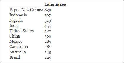 Η Παπούα Νέα Γουινέα , είναι η χώρα με τις περισσότερες ομιλούμενες γλώσσες. Συγκεκριμένα, στην Παπούα Νέα Γουινέα ομιλούνται 839 διαφορετικές γλώσσες, οι περισσότερες από τις οποίες είναι αυτόχθονες.