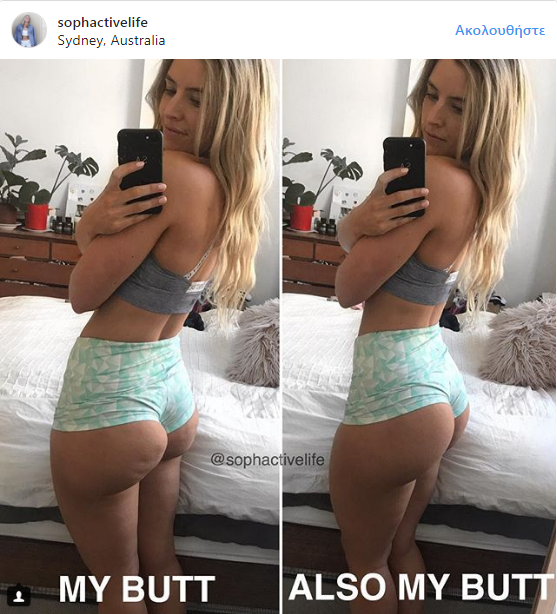 “Απλά είμαι ειλικρινής με όλους σας. Έχω κι εγώ κυτταρίτιδα η οποία φαίνεται όταν πιέζω τα οπίσθιά μου και εξαφανίζεται όταν τα σπρώχνω ελαφρά προς τα έξω. Μην αφήνετε το instagram να σας αποθαρρύνει απ’ όσα έχετε καταφέρει, επειδή παίζει πολλή επεξεργασία, τέντωμα, πόζα, γωνίες, φωτισμός και όλα αυτά. Το κάνουμε όλοι, απλά μην αυτομαστιγώνεστε αν βλέπετε συνέχεια γυναίκες χωρίς κυτταρίτιδα εκεί έξω. Πρέπει να αγκαλιάσουμε και να αγαπήσουμε τα κορμιά μας ως έχουν, ενώ δουλεύουμε σκληρά για να κάνουμε τους εαυτούς μας πιο υγιείς και δυνατούς“.