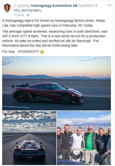 Η Koenigsegg αναμένεται να προχωρήσει σε περισσότερες πληροφορίες για το εκπληκτικό ρεκόρ.