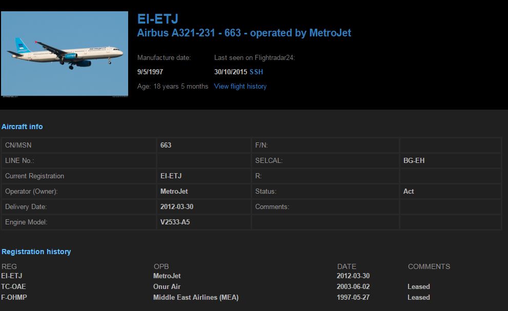 Το αεροπλάνο της εταιρείας Metrojet Kogalymavia με έδρα τη Σιβηρία που συνετρίβη στη χερσόνησο του Σινά στην Αίγυπτο ήταν ένα Airbus Α321-231.