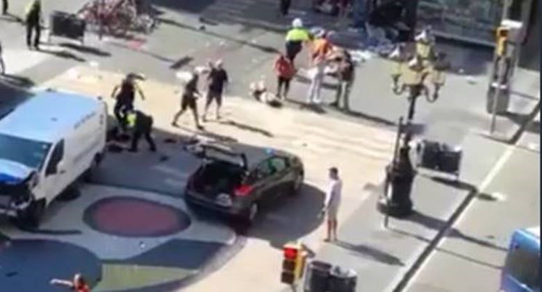 Το λευκό βαν στα αριστερά της φωτογραφίας είναι αυτό που σκόρπισε τον τρόμο στη Ράμπλας στη Βαρκελώνη, όταν έπεσε πάνω σε ανυποψίαστους ανθρώπους.