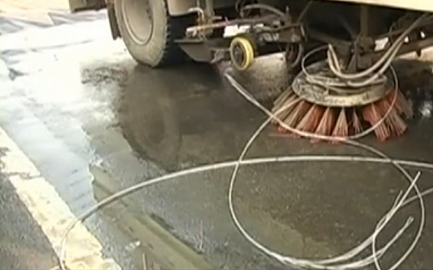 Κατά το ίδιο δημοσίευμα το καλώδιο αυτό μπερδεύτηκε στη σκούπα του οχήματος που καθαρίζει τους δρόμους και το οποίο βρίσκεται στα δεξιά των αυτοκινήτων που σηκώνονται στον αέρα.