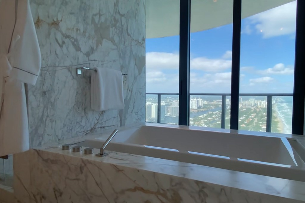 Το μπάνιο βρίσκεται σε ένα ρετιρέ στο Fisher Island. Το διαμέρισμα κοστίζει 32 εκατομμύρια δολάρια. Η εν λόγω περιοχή συγκεντρώνει τους πλουσιότερους ανθρώπους της Αμερικής.