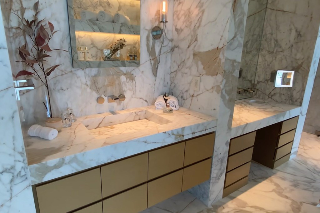 Έχετε σκεφτεί ποτέ πόσο κοστίζει το μπάνιο σας; Σίγουρα το μπάνιο του ενός εκατομμυρίου δολαρίων θα σας αφήσει άφωνους. Η πολυτέλεια των 1.500 τετραγωνικών μέτρων είναι αδιαμφισβήτητη, ενώ το χρυσό μάρμαρο Calacatta δίνει μια άλλη διάσταση στον χώρο.