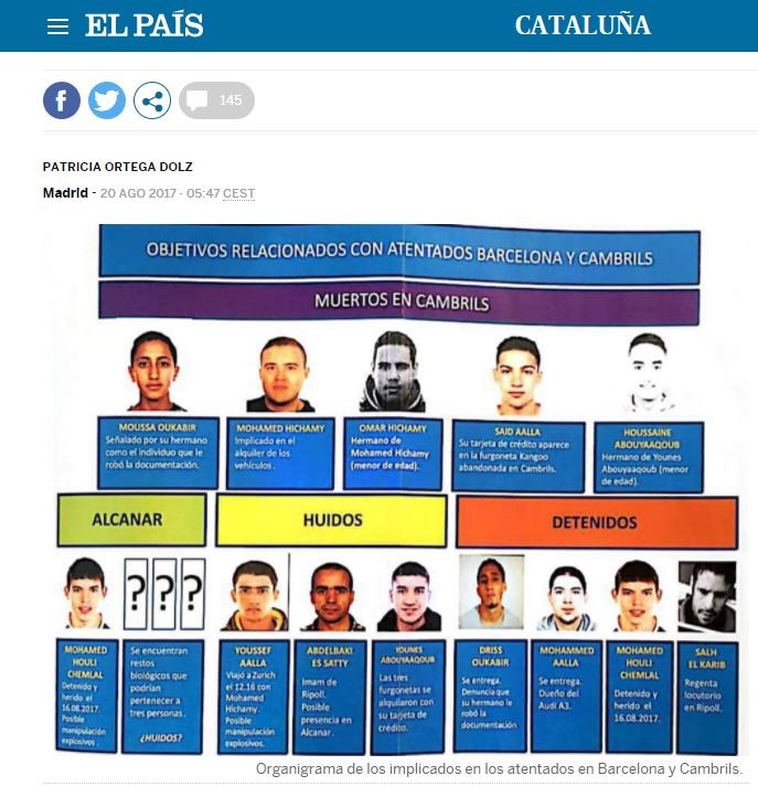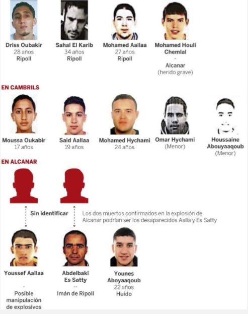 Σύμφωνα με την El Pais και το BBC, οι συλληφθέντες είναι ο Ντρις Ουμπακίρ, ο Σαχάλ Ελ Καρίμπ, ο Μοχάμεντ Αάλα και ο Μοχάμεντ Χουλί Τσεμχάλ.