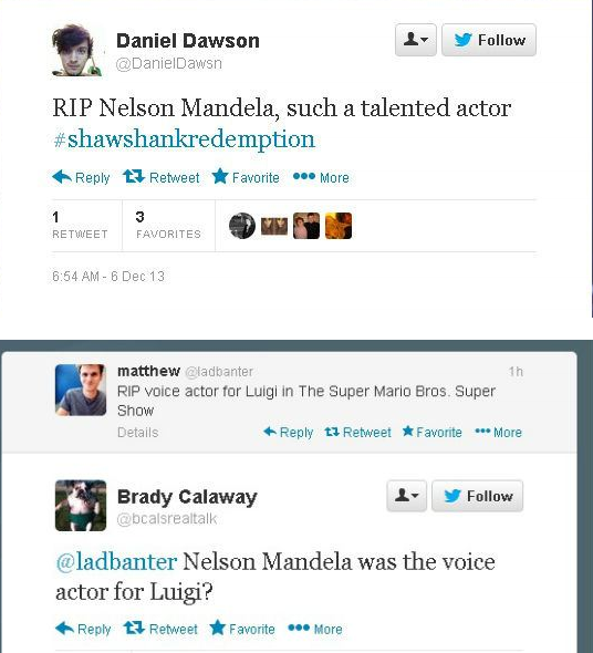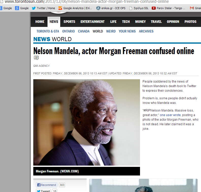 Αιτία του λάθους ήταν προφανώς η άγνοια αλλά και η επιπολαιότητα ορισμένων που έσπευσαν στο twitter να γράψουν RIP Morgan Freeman καθώς ο ικανότατος ηθοποιός υποδύθηκε με μεγάλη επιτυχία, στην ταινία του 2009, INVICTUS (ανίκητος) τον ηγέτη της Νότιας Αφρικής.