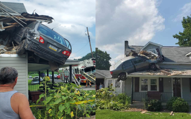 Ένα αυτοκίνητο εκτοξεύτηκε στον αέρα και προσγειώθηκε σε ένα υπνοδωμάτιο στον δεύτερο όροφο ενός σπιτιού στην Πενσυλβάνια, όπου παρέμεινε κρεμασμένο το απόγευμα της Κυριακής σε μια σκηνή απευθείας από ταινία δράσης.