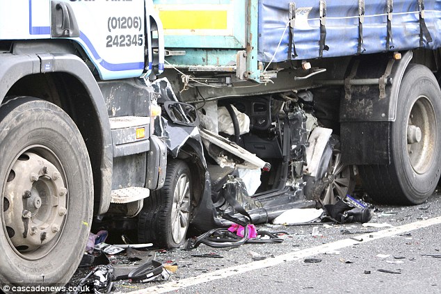 Σοκ προκαλούν οι εικόνες ενός αυτοκινήτου που έχει κυριολεκτικά σφηνωθεί ολόκληρο κάτω από ένα φορτηγό. Αν και το αυτοκίνητο είναι πολτοποιημένο κάτω από τα βαριά σίδερα της νταλίκας, η οδηγός σαν από θαύμα βγήκε ζωντανή από τα συντρίμμια και μεταφέρθηκε αμέσως αεροπορικώς στο Βασιλικό Νοσοκομείο του Λονδίνου. Η 27χρονη οδηγός δεν έφερε σοβαρά τραύματα.