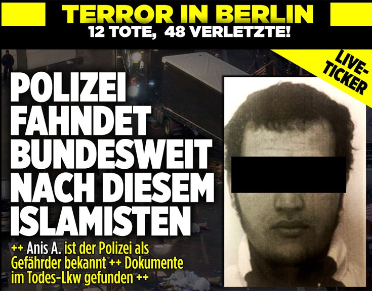 Αυτός είναι ο άνδρας που αναζητούν οι γερμανικές Αρχές για την τρομοκρατική επίθεση στο Βερολίνο που στοίχισε τη ζωή σε 12 άτομα, σύμφωνα με την ηλεκτρονική έκδοση Bild.
