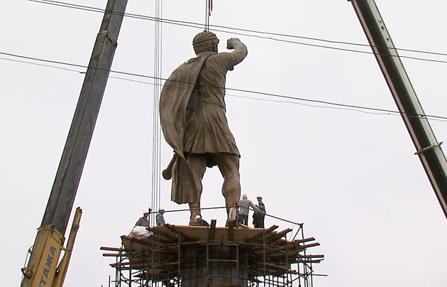 Άγαλμα του Φιλίππου Β’ τοποθετήθηκε, σήμερα, στην κεντρική πλατεία των Σκοπίων, σε απόσταση περίπου 150 μέτρων από το τεραστίων διαστάσεων άγαλμα του Μεγάλου Αλεξάνδρου που υπάρχει εκεί από τον περασμένο Ιούνιο. Το άγαλμα, το οποίο φέρει επισήμως την ονομασία «Πολεμιστής» (σ.σ. αντίστοιχα το άγαλμα του Μεγάλου Αλεξάνδρου αποκαλείται «Έφιππος Πολεμιστής») έχει ύψος 13 μ. και τοποθετήθηκε σε βάση 15 μ. Όπως αναφέρει σε σχετικό δημοσίευμά της η ηλεκτρονική ειδησεογραφική ιστοσελίδα Netpress, που είχε προαναγγείλει το γεγονός, η τοποθέτηση του αγάλματος αυτού είναι μέρος του προγράμματος μνημειοθέτησης του Δήμου Τσένταρ «προς τιμήν σημαντικών προσωπικοτήτων και γεγονότων». Βάσει του σχεδίου αυτού, μπροστά από το άγαλμα θα κατασκευαστούν δύο μικρότερα συντριβάνια με ανάγλυφα από χαλκό και μάρμαρο.