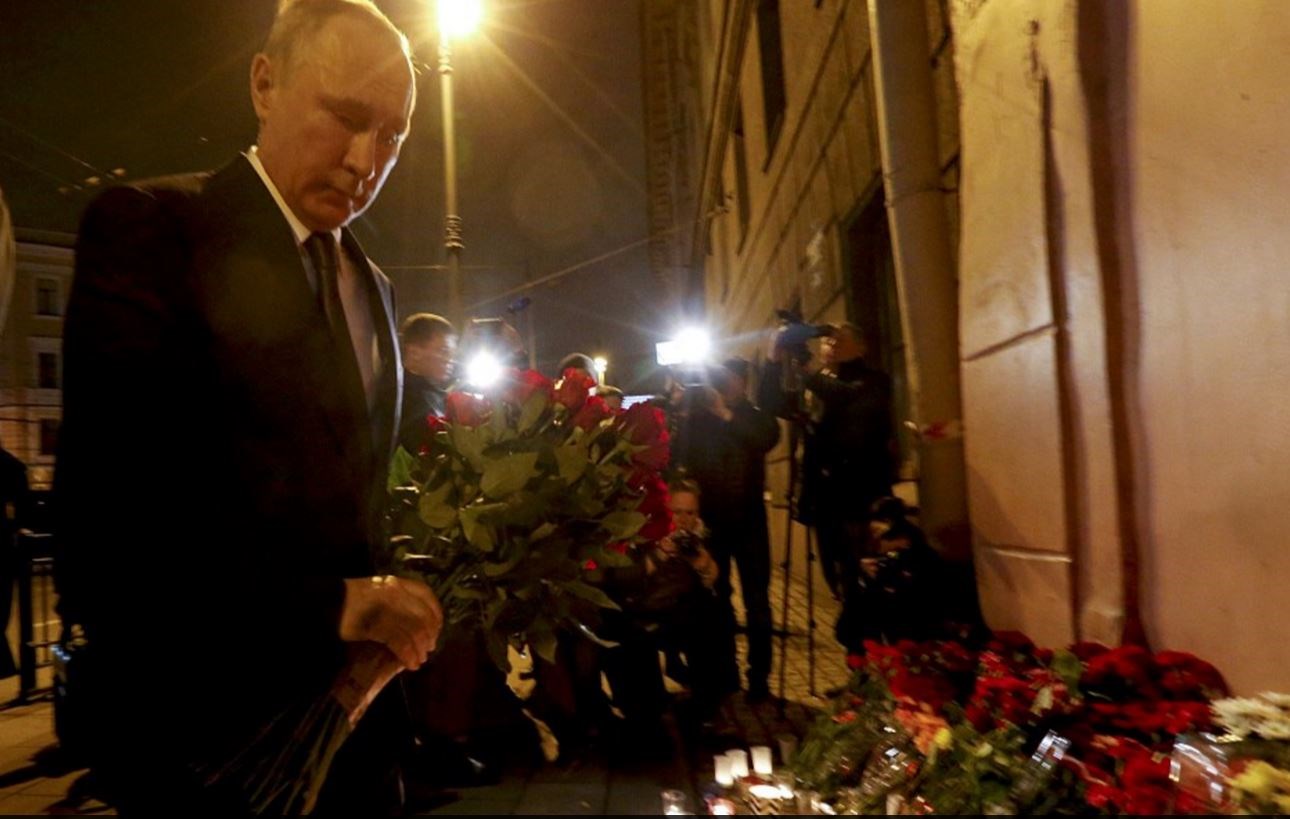 Στο σημείο που πραγματοποιήθηκε η επίθεση στο μετρό της Αγίας Πετρούπολης βρέθηκε αργά το βράδυ της Δευτέρας ο Ρώσος πρόεδρος Βλαντιμίρ Πούτιν.Ο ηγέτης της ρωσικής ομοσπονδίας ενημερώθηκε από τους αρμόδιους και στη συνέχεια, συνοδεία των συνεργατών του, πήγε στον ειδικό χώρο που έχει διαμορφωθεί για να τιμηθούν τα θύματα, αφήνοντας και ο ίδιος ένα λουλούδι, στη μνήμη όσων έχασαν τόσο άδικα τη ζωή τους.