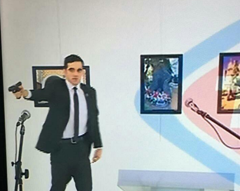 Έχουν περάσει ελάχιστα δευτερόλεπτα από τη στιγμή που ο άγνωστος άνδρας ντυμένος με κουστούμι και γραβάτα, πυροβόλησε τον Ρώσο Πρέσβη στην Τουρκία στο κεφάλι.