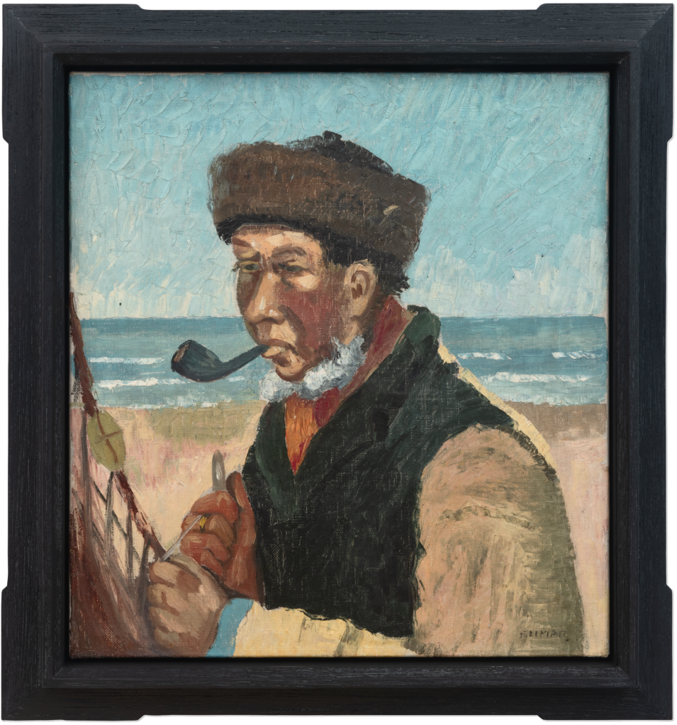 Το έργο απεικονίζει έναν ηλικιωμένο ψαρά με λευκή γενειάδα, που επισκευάζει τα δίχτυα του δίπλα σε μια έρημη ακτή. Στην κάτω δεξιά γωνία διακρίνεται η λέξη «Elimar», πιθανότατα το όνομα του απεικονιζόμενου άνδρα, σύμφωνα με το ArtNews.