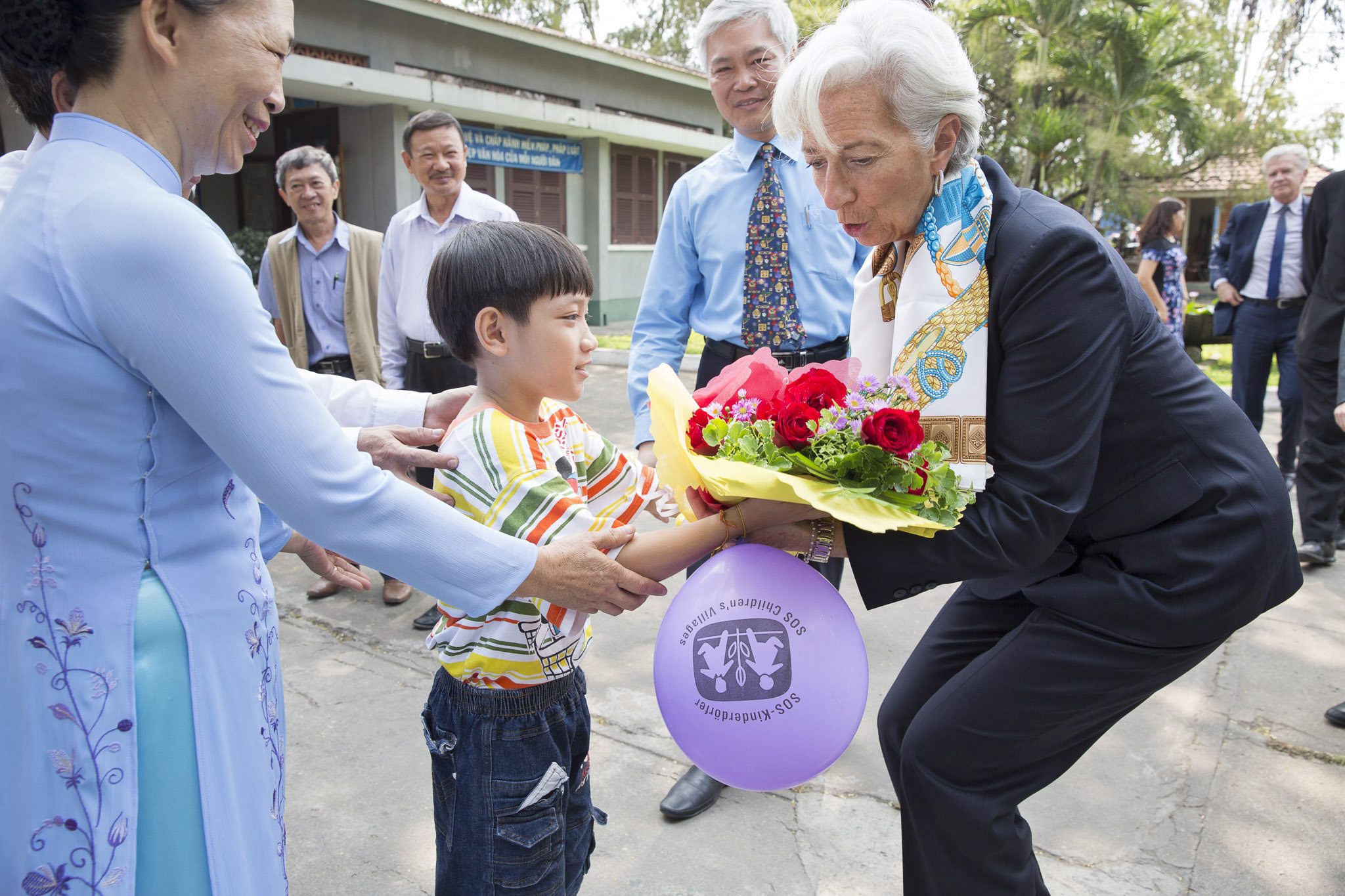 Τριήμερη επίσκεψη στο Βιετνάμ πραγματοποιεί η ισχυρή γυναίκα του ΔΝΤ, Κριστίν Λαγκάρντ. Η επικεφαλής του Διεθνούς Νομισματικού Ταμείου, βρέθηκε σε ένα παιδικό χωριό SOS, όπου φιλοξενούνται παιδιά και ένα χαριτωμένο αγοράκι της πρόσφερε μία ανθοδέσμη με λουλούδια.