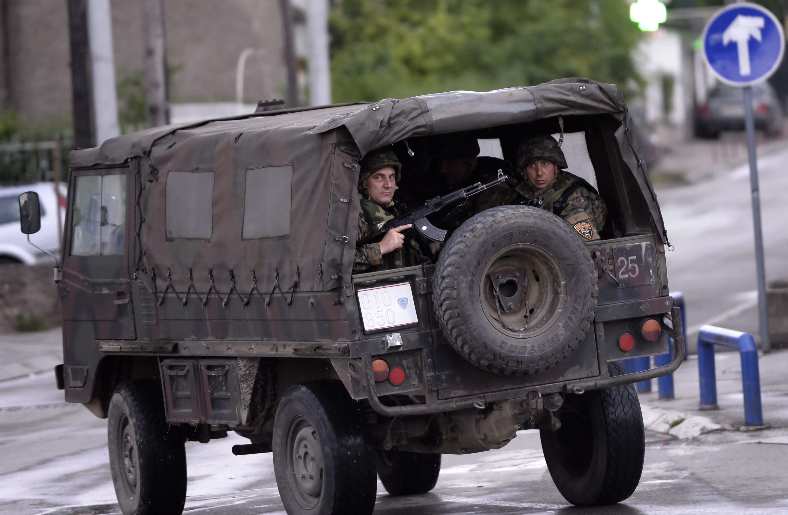 Συνεχίζονται με αμείωτη ένταση οι ένοπλες συρράξεις μεταξύ ισχυρών δυνάμεων της αστυνομίας και ομάδας ένοπλων Αλβανών στην αλβανόφωνη συνοικία της πόλης Κουμάνοβο, οι οποίες ξεκίνησαν νωρίς το πρωί.