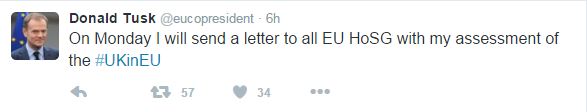 Ο Τουσκ, με ανάρτηση του στο Twitter, ανέφερε επίσης ότι θα στείλει μια επιστολή στους ηγέτες της ΕΕ τη Δευτέρα, με την αποτίμησή του για την πορεία των διαπραγματεύσεων της ΕΕ με την Βρετανία.