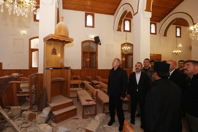 Τον ελληνορθόδοξο Ναό του Προφήτη Ηλία, στο Σαμαντάγκ, της Τουρκίας που επλήγη από τους σεισμούς της 6ης Φεβρουαρίου επισκέφτηκε σήμερα ο υπουργός Εθνικής Άμυνας της Τουρκίας Χουλουσί Ακάρ, στο πλαίσιο της περιοδείας του στην επαρχία Χατάι, η οποία είναι μεταξύ των επαρχιών που επλήγησαν από τον σεισμό με επίκεντρο το Καχραμανμαράς.