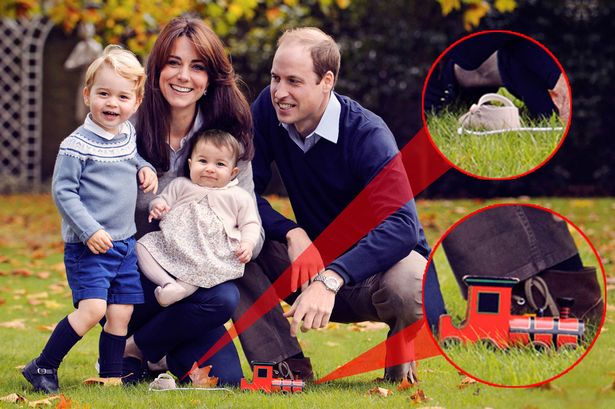 Με μια πρώτη ματιά ομολογουμένως η χριστουγεννιάτικη κάρτα της οικογένειας φαντάζει ως μια ιδανική οικογενειακή φωτογράφιση. Αν κοιτάξετε όμως πιο προσεκτικά όλο και κάποιες ατέλειες θα βρείτε. Αρχικά το παπουτσάκι της μικρής πριγκίπισσας έχει πέσει στο γρασίδι ενώ το παιχνιδάκι του πρίγκιπα Τζορτζ παρέμεινε ξεχασμένο μπροστά από την βασιλική οικογένεια την ώρα που ξεκίνησε η λήψη.