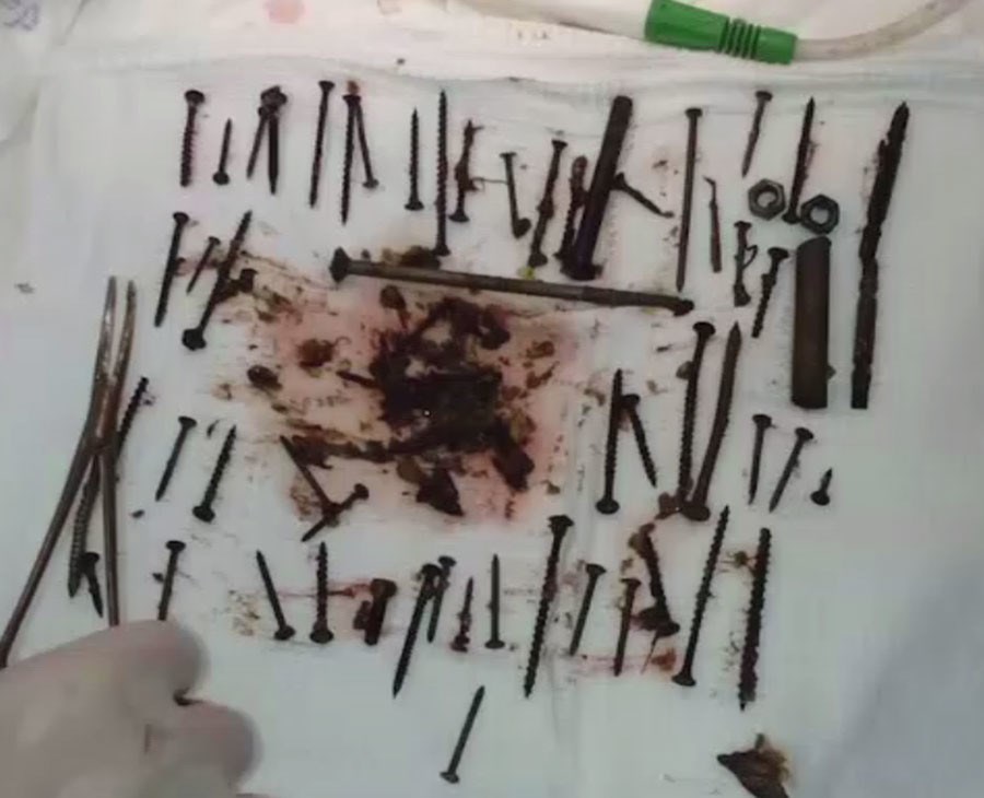Τα αντικείμενα ζύγιζαν περίπου ένα κιλό. Το μεγαλύτερο από τα αφαιρεθέντα αντικείμενα ήταν ένα καρφί 15 εκατοστών, ενώ όλα τα μεταλλικά αντικείμενα συγκεντρώθηκαν και παραδόθηκαν στους συγγενείς της γυναίκας. Το νοσοκομείο πρόσθεσε ότι τα μεταλλικά αντικείμενα είχαν ήδη “αρχίσει να οξειδώνονται”, γεγονός που δείχνει ότι ήταν μέσα στο σώμα της γυναίκας για σημαντικό χρονικό διάστημα.