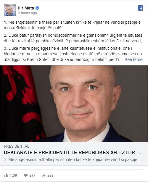 Την ακύρωση των επερχόμενων δημοτικών εκλογών ανακοίνωσε ο Πρόεδρος της Αλβανίας Ιλίρ Μέτα.Ειδικότερα, ο Πρόεδρος της Αλβανίας, μέσω ανακοίνωσης του στο Fecebook, δημοσιοποίησε την πρόθεση του για ακύρωση του διατάγματος για δημοτικές εκλογές στις 30 Ιουνίου, καθώς οι πολιτικές εξελίξεις δεν επιτρέπουν την διεξαγωγή τους.Η δήλωση του Προέδρου της Δημοκρατίας κ. ΙΛΙΡ ΜΕΤΑ1. Με βαθιά ανησυχία για την κρίσιμη κατάσταση που έχει δημιουργηθεί στην χώρα σαν αποτέλεσμα της μη ανταπόκρισης από καμία από τις δύο πλευρές.2. Λαμβάνοντας υπ’όψη την αναγκαιότητα της άμεσης εκτόνωσης και τον κίνδυνο της απρόβλεπτης κλιμάκωσης της σύγκρουσης στη χώρα.3. Αναλαμβάνοντας την υψηλή συνταγματική και θεσμική ευθύνη και πεπεισμένος πως η προάσπιση των συνταγματικών αρχών είναι πιο σημαντική από κάθε εκ του νόμου προθεσμία, ως άρχων του Κράτους και εμμένοντας στο όρκο για να υπηρετώ με κάθε τρόπο της τήρηση της σταθερότητας , της κοινωνικής ειρήνης και της εθνικής ενότητας.4. Με πλήρη επίγνωση πως οι υφιστάμενες συνθήκες δεν δύνανται να διασφαλίσουν την διενέργεια πραγματικών εκλογών, δημοκρατικών, αντιπροσωπευτικών και καθολικών. Οι ελεύθερες, έντιμες και καθολικές εκλογές αποτελούν βασικό κριτήριο της “Κοπεγχάγης” και στις υφιστάμενες συνθήκες, εξ αιτίας της έλλειψης υπευθυνότητας των δύο μερών , οδηγούμαστε σε μονοκομματικές εκλογές. Κατ’ αυτόν τον τρόπο δυναμιτίζεται κάθε δυνατότητα για την έναρξη των ενταξιακών διαπραγματεύσεων με την Ευρωπαϊκή Ένωση, ζημιώνεται η εικόνα μιας χώρας μέλους του ΝΑΤΟ και επαπειλείται η αρχηγία του ΟΑΣΕ για το 2020.5. Καλώντας όλους τους υπεύθυνους παράγοντες, ντόπιους και διεθνείς να ενώσουν τις εποικοδομητικές συμβολές τους για την επανέναρξη επειγόντως του αναντικατάστατου πολιτικού διαλόγου και για την εξεύρεση μιας σύντομης λύσης που θα εξυπηρετεί το ευρωπαϊκό μέλλον της Αλβανίας.Έχω αποφασίσει να ακυρώσω το Διάταγμα υπ’αριθμ. 10928 της 05.11.2018 για την διενέργεια εκλογών για την Τοπική Αυτοδιοίκησης στις 30.6.2019.Στην πρώτη ανακοίνωση την Δευτέρα 10 Ιουνίου η Προεδρία της Δημοκρατίας θα ανακοινώσει δημόσια όλα τα επιχειρήματα της συνταγματικότητας, του Νόμου και της λογικής, που οδήγησαν στην λήψη αυτής της απόφασης.Παράλληλα εφιστά τη προσοχή όλων των μελών να αποφύγουν κάθε πρόκληση που μπορεί να παρουσιαστεί κατά την διάρκεια της διαμαρτυρίας.Η εξέλιξη αυτή ανοίγει τον δρόμο για την υποψηφιότητα του Φ. Μπελέρη για τον δήμο Χιμάρας.