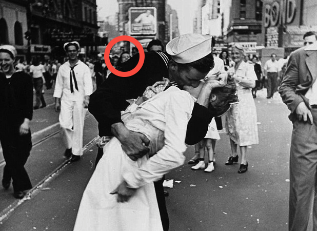 Tο πιο απίστευτο είναι πως στο φόντο της φωτογραφίας είναι η γυναίκα του ναύτη, με την οποία αν και δεν ήταν παντρεμένος τότε, είχε βγει μαζί της σε ραντεβού.