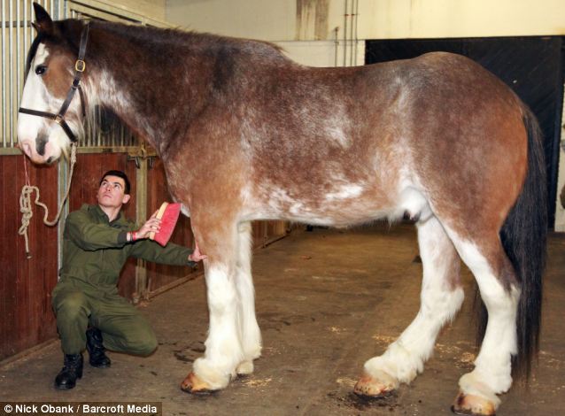 Πολλά άλογα παρελαύνουν στα Ανάκτορα του Μπάκιγχαμ, αλλά η επίσκεψη της 8χρονης Clydeshele προκάλεσε σάλο, καθώς όπως βλέπετε και στις φωτογραφίες είναι το μεγαλύτερο άλογο στην Μεγάλη Βρετανία.Το συγκεκριμένο άλογο έχει ύψος 19.3 χέρια (6 πόδια 8 ίντσες).
