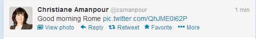 Η Κριστιάν Αμανπούρ βρίσκεται στη Ρώμη, για το “αντίο” του Πάπα και ανεβάζει στο λογαριασμό της στο twitter μια πρωινή φωτογραφία της “αιώνιας πόλης”.