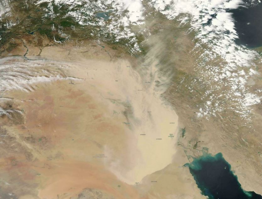Από τα μέσα Απριλίου το Ιράκ, μια από τις πέντε χώρες του κόσμου που θεωρούνται πιο «ευπαθείς» απέναντι στην κλιματική αλλαγή, έχει βιώσει τουλάχιστον οκτώ τέτοιες θύελλες σκόνης και άμμου. Σήμερα στη Βαγδάτη ένα γκρίζο σύννεφο σκόνης είχε καλύψει τους σχεδόν έρημους δρόμους.