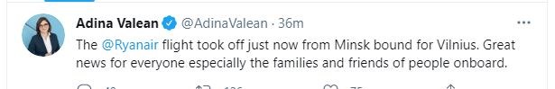 Θύελλα αντιδράσεων έχει προκαλέσει η αναγκαστική προσγείωση αεροσκάφους στο Μινσκ προκειμένου να συλληφθεί Λευκορώσος δημοσιογράφος. Η πτήση που απογειώθηκε από την Αθήνα, είχε προορισμό το Βίλνιους ενώ αναγκάστηκε να προσγειωθεί στη Λευκορωσία, ξεσηκώνοντας αντιδράσεις από ολόκληρη την Ευρώπη. Έπειτα από πολύωρο θρίλερ, η πτήση της Ryanair,, απογειώθηκε για τον προορισμό της, το Βίλνιους της Λιθουανίας, όπου προσγειώθηκε λίγα λεπτά πριν από τις 22.00 (ώρα Ελλάδας), σύμφωνα με τον εξειδικευμένο ιστότοπο FlightRadar που παρακολουθεί τις πτήσεις της πολιτικής αεροπορίας. Η Επίτροπος Μεταφορών Αντίνα Βαλεάν είχε σημειώσει πως ως ώρα άφιξης αναφέρεται η 21.19 τοπική. «Αναμενόμενη ώρα προσγείωσης στο Βίλνιους 21.19 τοπική ώρα. Πρέπει να επαληθεύσουμε όλα τα γεγονότα και τους επιβάτες – δεν μπορούμε να το κάνουμε αυτό μέχρι την άφιξη στο Βίλνιους. Αυτή η κατάσταση θα έχει συνέπειες» πρόσθεσε προαναγγέλλοντας κυρώσεις για τη Λευκορωσία. Νωρίτερα, με ανάρτησή της στο twitter είχε ενημερώσει πως «η πτήση της Ryanair απογειώθηκε μόλις από το Μινσκ με προορισμό το Βίλνιους. Υπέροχα νέα για όλους, ειδικά για τις οικογένειες και τους φίλους των ανθρώπων που ταξιδεύουν».