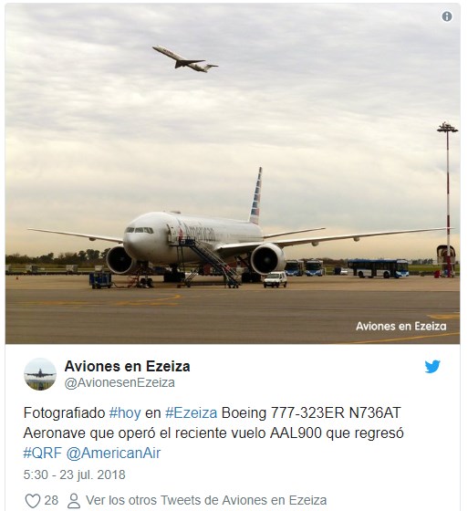 Σύμφωνα με τις τοπικές εφημερίδες Clarin και La Nacion και τον τηλεοπτικό σταθμό TN, το αεροσκάφος, το οποίο εκτελούσε πτήση προς τις ΗΠΑ, υπέστη μείωση της πίεσης αέρα στην καμπίνα των επιβατών, ενώ βρισκόταν περίπου 200 χιλιόμετρα βόρεια της πρωτεύουσας της Αργεντινής και επέστρεψε στο Μπουένος Άιρες.
