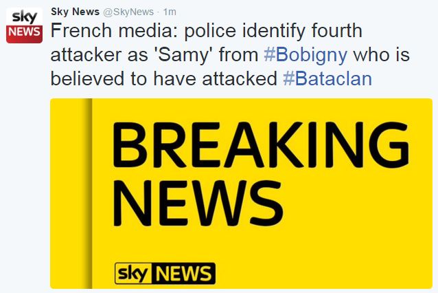 Σύμφωνα με τα Γαλλικά μέσα ενημέρωσης, οι αρχές αναγνώρισαν και 4ο τζιχαντιστή ο οποίος εκτιμάται ότι επιτέθηκε στο Μπατακλάν.