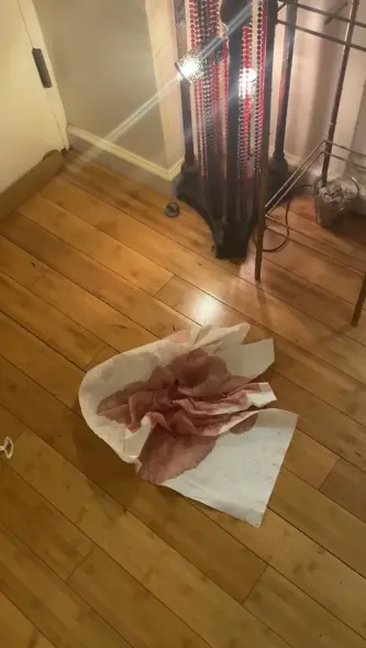Ο εφιάλτης ξεκίνησε πέντε μέρες πριν από το Halloween. Η 35χρονη ρεσεψιονίστ επέστρεψε στο σπίτι από τη βόλτα που είχε πάει με τον σκύλο της και βρήκε μια μεσαίου μεγέθους κηλίδα αίματος στο πάτωμα, ενώ ένα κόκκινο υγρό έτρεχε στον τοίχο, σύμφωνα με βίντεο που κοινοποιήθηκε στην New York Post. Μια αποκρουστική δυσοσμία επικρατούσε στον χώρο.