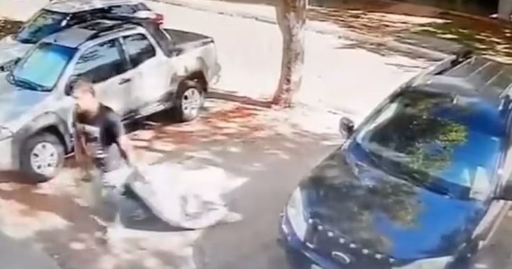Σε βίντεο-σοκ φαίνεται ο 43χρονος Daniel Moraes Bittar, να παλεύει να τραβήξει τη βαλίτσα στις σκάλες δύο ορόφων, στο σπίτι του, στη Luziania της Βραζιλίας στις 28 Ιουνίου, του περασμένου έτους.