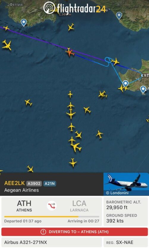 Νωρίτερα, πτήση της Aegean Airlines (902) με προορισμό τη Λάρνακα επέστρεψε στην Αθήνα, λόγω των περιορισμών που είχαν τεθεί.