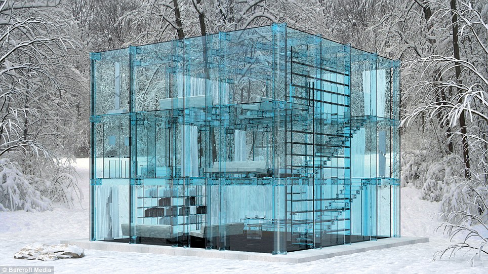 Μέσω υπολογιστή μας δίνει μια ιδέα,για το πώς μπορεί να είναι αυτό το σπίτι. Το μόνο που δεν είναι από γυαλί είναι το κρεβάτι και αυτό μάλλον για ευνόητους λόγους.