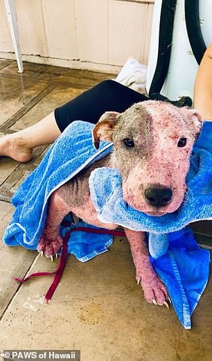 Το κουτάβι δύο μηνών σώθηκε από μία πληροφορία που έδωσε το κοινό στην αρμόδια υπηρεσία της Χαβάης. Αμέσως έσπευσαν υπάλληλοι και εντόπισαν θαμμένη μέσα στο χώμα τη μικρούλα Λεϊαλόχα. Ήταν τρομερά πρησμένη, καμένη από τον ήλιο και έχοντας χάσει το 90% από το τρίχωμά της. Έλειπε ακόμη και μέρος από την πατούσα της το οποίο εικάζεται ότι της το είχαν πετσοκόψει με σκουριασμένο μαχαίρι το οποίο βρέθηκε θαμμένο μαζί της. Το δύο μηνών κουτάβι είχε υποστεί βασανιστήρια και κακομεταχείριση προτού το θάψουν ζωντανό στην άμμο στην παραλία Ο’αχου.
