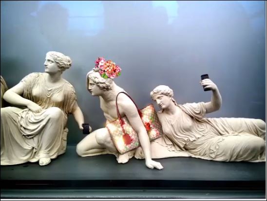 Στο επίσημο λογαριασμό του οίκου υψηλής ραπτικής στο Instagram, τα γλυπτά του Παρθενώνα κάνουν πάρτι και βγάζουν σέλφι με iphone.