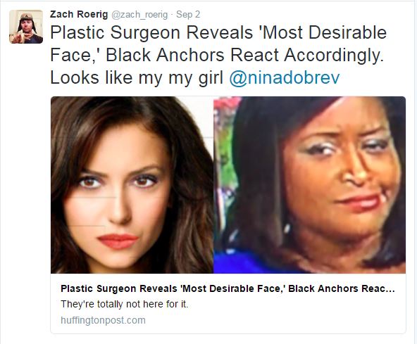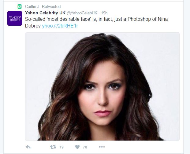 Ένας πλαστικός χειρουργός ανέβασε μια φωτογραφία και κείμενο στο οποίο αναφέρει από πού «έκλεψε» το κάθε χαρακτηριστικό για να φτιάξει το τέλειο πρόσωπο. Προφανώς δεν ανέμενε ότι οι χρήστες του twitter θα τον αποδοκίμαζαν καθώς βρήκαν ότι το τέλειο πρόσωπο δεν είναι άλλο από το πρόσωπο της ηθοποιού Nina Dobrev.