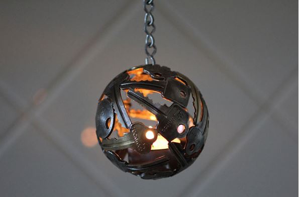 “Σε μια προσπάθειά μου να καθαρίσω την αποθήκη στο σπίτι ανακάλυψα πολλά παλιά κλειδιά και αρκετά κέρματα σε κουτιά. Σκέφτηκα να μην τα πετάξω και αναρωτήθηκα τι θα μπορούσα να κάνω με αυτά. Στην πορεία και ψάχνοντας στο διαδίκτυο για ιδέες ξεκίνησα να δημιουργώ κάποια πρώτα δείγματα. Είδα ότι τα μπουκάλια και οι λάμπες ήταν μια καλή περίπτωση και έτσι συνέχισα…”, εξηγεί ο ίδιος.
