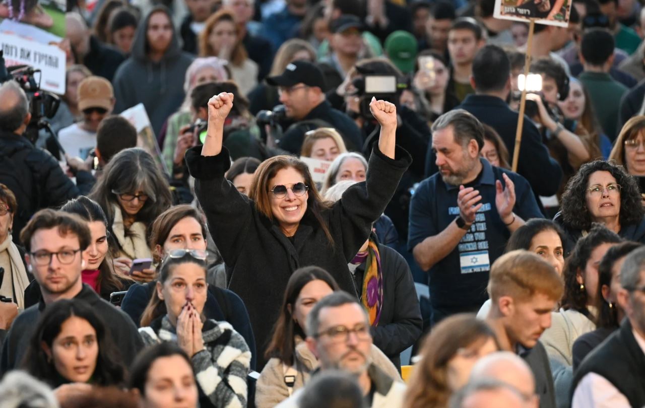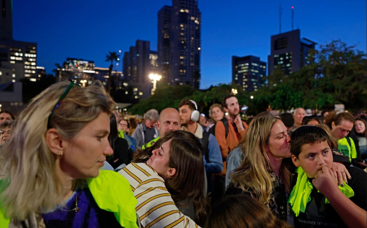 - Δεκάδες Ισραηλινοί είναι επίσης συγκεντρωμένοι στην πλατεία ομήρων και παρακολουθούν σε μεγάλες οθόνες τις εικόνες από την διαδικασία απελευθέρωσης των ομήρων