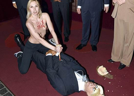 Μια ακτιβίστρια της φεμινιστικής οργάνωσης “Femen” κατέστρεψε σήμερα, χτυπώντας το με ένα ξύλινο ρόπαλο, το κέρινο άγαλμα του Ρώσου προέδρου, Βλαντίμιρ Πούτιν, στο Μουσείο Γκρεβέν της Γαλλίας, φωνάζοντας συνθήματα όπως “Πούτιν, δικτάτορα”.