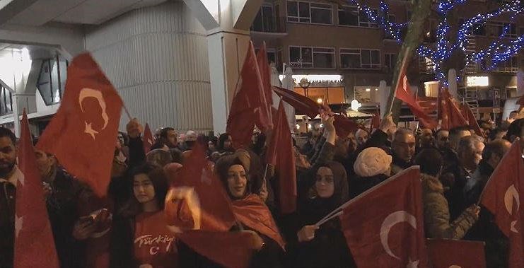 Τεταμένο το κλίμα στο Ρότερνταμ – Εκατοντάδες διαδηλωτές έξω από το τουρκικό προξενείο – ΦΩΤΟΕκατοντάδες διαδηλωτές που κρατούσαν τουρκικές σημαίες συγκεντρώθηκαν έξω από το τουρκικό προξενείο του Ρότερνταμ ζητώντας να δουν την υπουργό Οικογενειακών Υποθέσεων της Τουρκίας, καθώς κλιμακώνεται η διπλωματική σύγκρουση μεταξύ της Ολλανδίας και της Τουρκίας.Με μεταλλικά φράγματα και έφιππους αστυνομικούς οι ολλανδικές δυνάμεις της τάξης προσπάθησαν να κρατήσουν μακριά από το προξενείο το πλήθος που μεγάλωνε, καθώς διαδηλωτές άρχισαν να φθάνουν από τη Γερμανία.Η υπουργός Οικογενειακών Υποθέσεων της Τουρκίας έφθασε οδικώς στην Ολλανδία από τη γειτονική Γερμανία, αφού η ολλανδική κυβέρνηση ανακοίνωσε ότι απαγορεύει στο αεροπλάνο που θα μετέφερε τον τούρκο υπουργό Εξωτερικών Μεβλούτ Τσαβούσογλου να προσγειωθεί στο Ρότερνταμ. Η ολλανδική αστυνομία την εμπόδισε να εισέλθει στο τουρκικό προξενείο της πόλης.Η ολλανδική κυβέρνηση κατέστησε σαφές ότι δεν θέλει Τούρκους πολιτικούς να κάνουν εκστρατεία για το δημοψήφισμα της 16ης Απριλίου στο ολλανδικό έδαφος στις κοινότητες των τούρκων μεταναστών.ΠΗΓΗ: ΑΠΕ – ΜΠΕ, ΠΗΓΗ ΦΩΤΟ: AnadoluΔείτε τις φωτογραφίες: