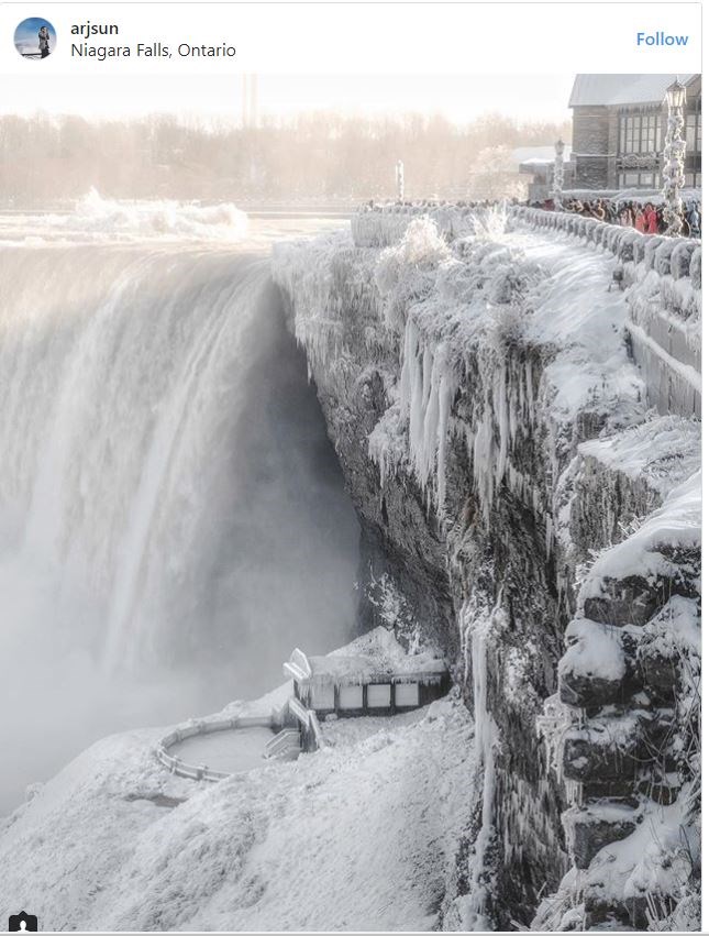 Με “παγωμένο παράδεισο” μοιάζουν οι καταρράκτες του Νιαγάρα τις τελευταίες ώρες. Σαν σκηνή βγαλμένη από ταινία, τα νερά των καταρρακτών έχουν κρυσταλλώσει, προσφέροντας μαγικό θέαμα στους επισκέπτες που δεν σταματούν να απαθανατίζουν το τοπίο.