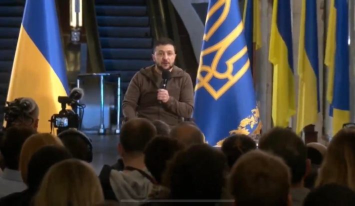 Για εγκλήματα πολέμου έκανε λόγο ο Ουκρανός Πρόεδρος Βολοντίμιρ Ζελένσκι, σε συνέντευξη Τύπου που παραχώρησε χθες σε έναν υπόγειο σταθμό του μέτρο, βάθους 71 μέτρων.