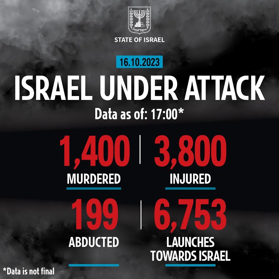 Στόχος των ισραηλινών δυνάμεων είναι να δώσουν ένα ισχυρό χτύπημα στην τρομοκρατία, που σύμφωνα με τα τελευταία στοιχεία έχει αφήσει πίσω της πάνω από 1.400 νεκρούς, 3800 τραυματίες, ενώ υπάρχουν 199 όμηροι. Μέχρι χθες στις πέντε το απόγευμα ή Χαμάς είχε εκτοξεύσει 6753 ρουκέτες στο Ισραήλ, από την 7η Οκτωβρίου.