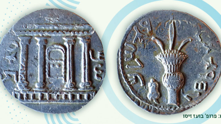 Στη μια πλευρά του νομίσματος απεικονίζεται ένα ναός – πιθανότατα ο «Δεύτερος Ναός» του Σολομώντα, ο οποίος καταστράφηκε ολοκληρωτικά από τους Ρωμαίους το 70 μ.Χ. κατά τον Πρώτο Ιουδαϊκό Πόλεμο.